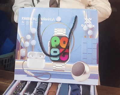 En plus de la Montre, vous aurez un Mini Woofer pour mettre l'ambiance partout, et des écouteurs AirPods pour écouter votre musique en toute discrétion.